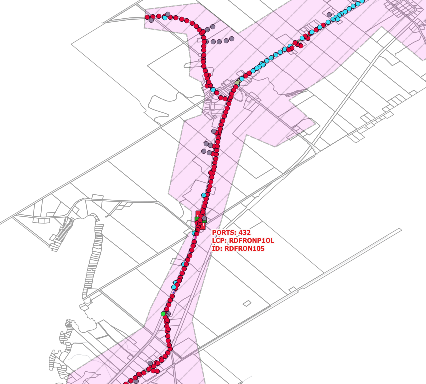 - Points de distribution, boîtes de jonction, boîtiers de terminaison et points d’épissure avec des données attributaires détaillées.
